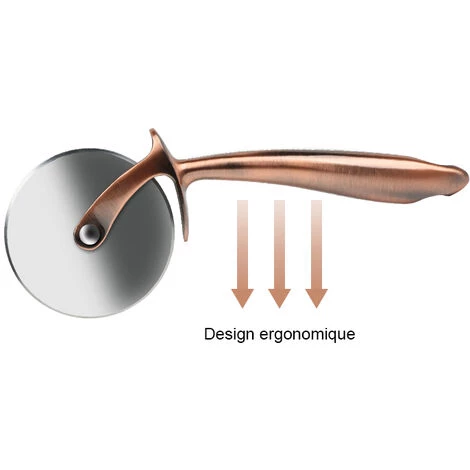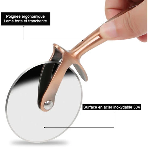 – Grâce à sa lame circulaire double face, cette roulette à pizza est parfaitement aiguisée et découpe vos pizzas et autres pâtes sans effort.