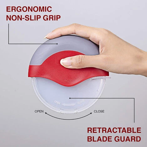 CONCEPTION BRILLANTE QUI PROTÈGE VOS MAINS CONTRE LES BLESSURES – Contrairement aux coupe-pizza à l’ancienne, ce puissant coupe-pizza est doté d’un protège-lame que vous pouvez facilement fermer lorsqu’il n’est pas utilisé. Ne vous inquiétez pas si vosenfants se coupent à nouveau les mains.