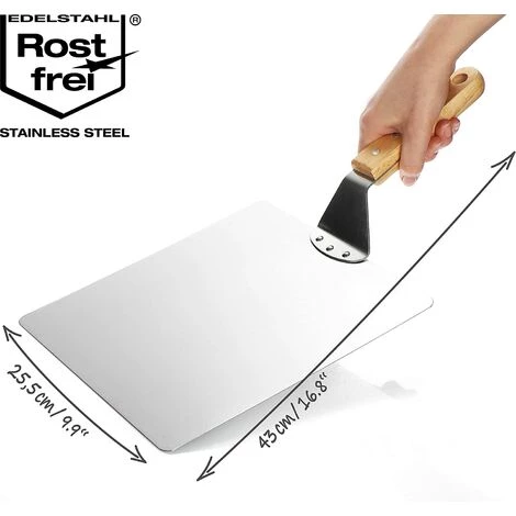 HAUTE QUALITÉ : La pelle à pizza avec manche en bois est en acier inoxydable antirouille et est donc très résistante et facile à nettoyer !
