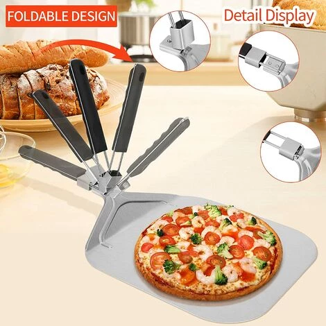Fei Yu Pelle à Pizza, Professionnelle Pelle A Pizza Perforée 32 X 32 Cm, Support De Grande Surface, Avec Poignée Pliable Pour Four Et Barbecue Pour La Cuisson De Pizzas, Pain, Longueur Totale 63,2 Cm