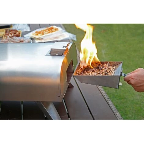 <Cuiseur polyvalent> Le four de pizza présente un très joli design avec ses formes arrondies, sa couleur aluminium et sa petite cheminée qui fume lorsqu’il chauffe. Mais ce modèle n’est pas seulement esthétique, il est aussi très performant.Il chauffe jusqu’à 460°C en seulement 15 minutes, ce qui est une montée en température tout à fait satisfaisante pour un four à pizza au pellets de bois alimentaire. De plus, la cuisson est également très rapide puisque la pizza est prête en seulement 60 secondes. Avec sa large pierre de cuisson, ce four permet de cuire une pizza de 12 pouces et d’en enfourner plusieurs à la suite. Ce four est ergonomique avec ses 4 pieds, stables et repliables, ainsi que ses poignées. Facile à monter, il est également simple à transporter grace à sa légèreté et son format compact.