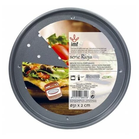 Stampo per pizza 31 cm 8845.-Realizzato in acciaio con rivestimento interno in Teflon e lacca decorativa esterna Resistente alle alte temperature +230 gradi.-IDEAL per gratinare, cuocere e cuocere i tuoi cibi, speciale per pizze precotte / surgelate.-Facile pulizia.-Misure: 31 x 31 x 2 cm.