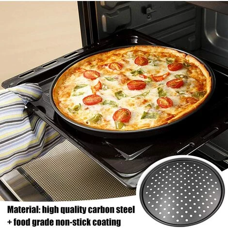HEGUYEY Poêle à Pizza En Acier Au Carbone Multi-usages Perforée Poêle à Pizza Antiadhésive