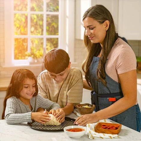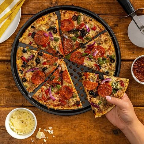 Pizza maison fine et croustillante : Vous salivez quand vous voyez un restaurant servir une pizza croustillante ? Maintenant, vous pouvez le faire à la maison. Nos moules à pizza sont perforés : ces trous assurent une répartition homogène de la chaleur pour des pizzas parfaitement rondes et croustillantes. Les bords sont relevés pour éviter que le fromage ne s’échappe et que la croûte ne brûle.