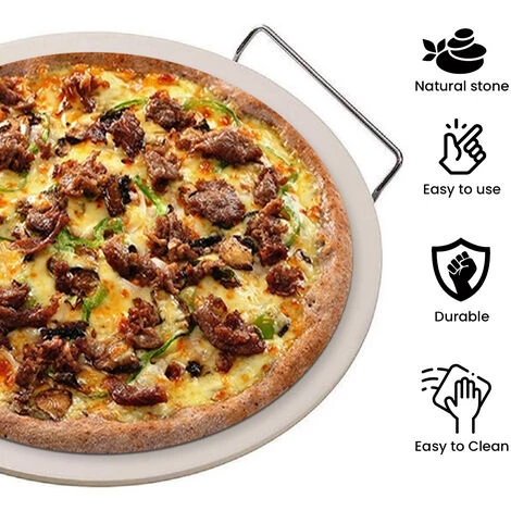 La meilleure pizza est celle que vous mangez en Italie ou que vous faites vous-même. Vous pouvez bien sûr préparer la bonne pâte, mais la cuisson dune pizza maison est beaucoup plus délicate. Avec cette pierre à pizza en pierre naturelle, vous pouvez préparer vous-même la meilleure pizza dans un barbecue fermé ou dans votre four. Avec la pierre à pizza, vous pouvez mieux maintenir une température constante et la répartir uniformément afin de préparer la plus savoureuse des pizzas. Livré avec un support chromé.