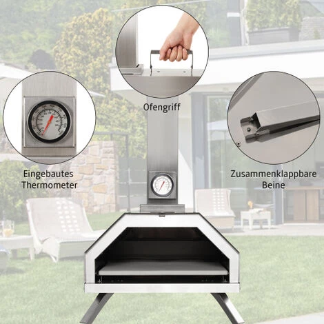 【Rapide à installer et facile à transporter】Ce four à pizza peut être installé rapidement en quelques minutes. Il est facile à transporter lorsque vous sortez, et vous pouvez réaliser des activités de cuisine en plein air à tout moment grâce à la poignée et aux 4 pieds pliables en acier inoxydable. Équipé d’un thermomètre qui vous permet de surveiller la température dans le four à tout moment pour les meilleurs résultats.