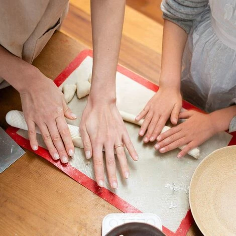 【Qualité Professionnelle】Silicone alimentaire durable et de qualité, sans BPA, avec du tissu de fibre de verre tressée, qui ne se contente pas de rendre le tapis robuste, mais répartit également la chaleur de faon optimale; il résiste aux températures allant de -40°C à 250°C.