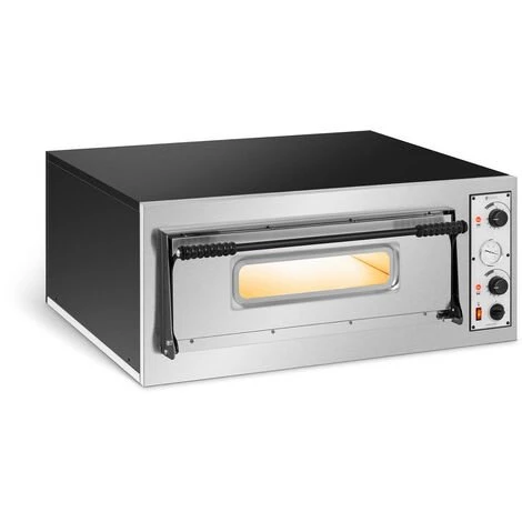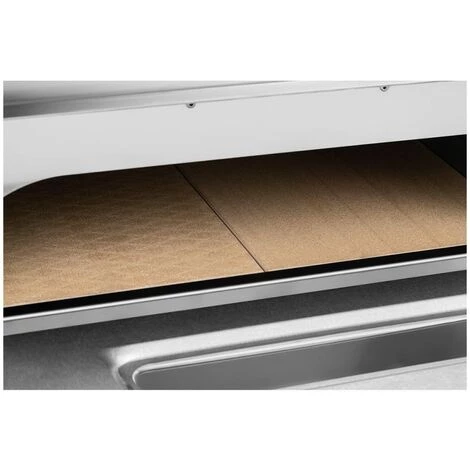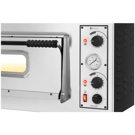 La température joue un rôle essentiel lors de la préparation de la pizza. Voilà pourquoi ce four est doté d’une cavité avec voute et sole indépendantes dont la température peut être réglée sur 45 à 455 °C. De cette manière, il est possible d’obtenir une pâte mince et croustillante, recouverte d’une garniture juteuse. Un thermomètre vous indique quand la température optimale est atteinte. La cavité accueille jusqu’à 4 pizzas (ou tartes flambées) de 32 cm de diamètre. Grâce aux deux éléments chauffants de 2 350 W de la voute et la sole, la montée en température est très rapide. Faites la joie votre clientèle : servez de délicieuses pizzas tout droit sorties du four avec les fours professionnels Royal Catering !