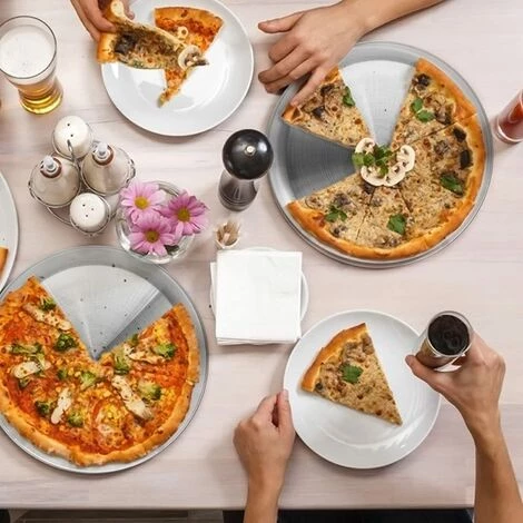 【Finition brossée】Les ronde plateau à pizza sont fabriqués avec une surface brossée pour que les aliments aient moins tendance à coller à la plaque de cuisson, facile à nettoyer, lavable au lave-vaisselle, pratique et gain de temps.