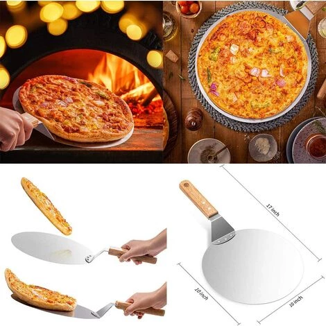 Rangement sûr et facile: la poignée en bois pratique empêche efficacement la conduction thermique de la lame en acier inoxydable pour protéger vos mains des brûlures. Va au lave-vaisselle, pas d’arêtes vives. Avec un design perforé pour un rangement facile. Outil à pizza parfait qui peut transférer en toute sécurité la pizza et les gâteaux sur une planche ou un récipient.
