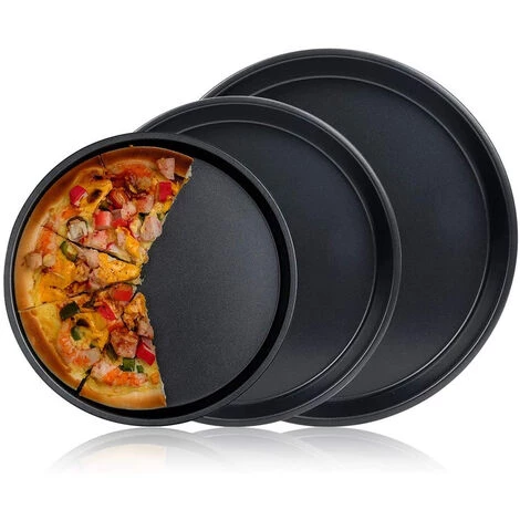 Cet ensemble de moules à pizza comprend 3 moules ronds de différentes tailles pour faire des pizzas et autres produits de boulangerie !