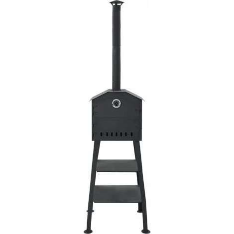 Ce four sur pied convient à tous les types de charbon de bois. Le bac à feu est amovible, permettant un nettoyage rapide et facile. Le compartiment du haut est utilisé pour la cuisson et sa base est constituée de deux briques réfractaires (« en argile de feu »), qui répartissent la chaleur de manière uniforme dans le four et peuvent résister à des températures allant jusqu’à 1 300 ℃. Les briques garantissent également que votre nourriture ne sera pas souillée par les cendres volantes ou la poussière du feu. Les deux étagères fournies sous le four sont pratiques pour ranger des gants de cuisine ou d’autres fournitures. Ce four est également livré avec un thermomètre intégré.
