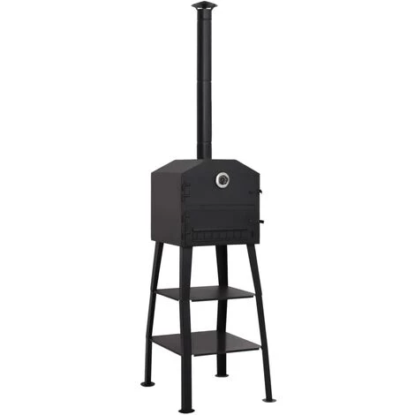 Ce four autonome convient à tous les types de charbon de bois. Le plateau est amovible, ce qui permet un nettoyage rapide et facile. Le compartiment supérieur est utilisé pour la cuisson et sa base est constituée de deux briques réfractaires (argile réfractaire), qui répartissent uniformément la chaleur dans le four et peuvent supporter des températures allant jusqu’à 1300 ℃. Les briques garantissent également que vos aliments ne seront pas souillés par les cendres volantes ou la poussière du feu. Les deux étagères fournies sous le four sont pratiques pour ranger des gants de four ou d’autres fournitures. Ce four est également livré avec un thermomètre intégré.