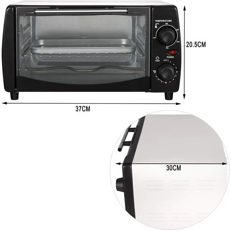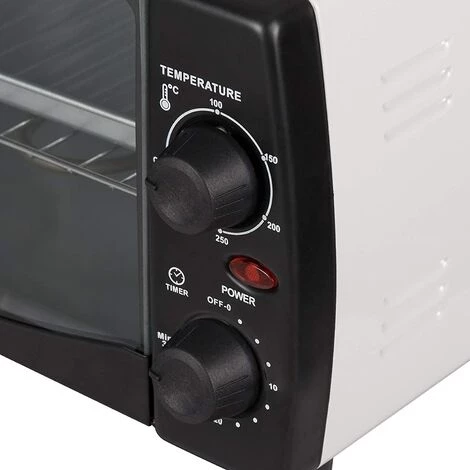 – Ce mini four électrique d’ une puissance de 800 w est muni d’un thermostat réglable pouvant aller jusqu’à 250 degrés pour adapter la température en fonction des plats cuisinés.